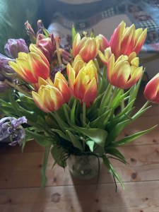 Selbst das Schreiben, das sie so sehr liebt, fällt ihr zurzeit schwer. Oft fließen Tränen, wenn sie an ihre beiden Katzen denkt. Bilder von ihnen sieht, ganz frühe, als sie noch klein waren und spätere, die ihre prächtige Entwicklung zeigen. „Mir verschlägt es auch fast die Sprache, ähm den Schnabel. Von Fliegen ganz zu schweigen“, sagt Firlefanz zu der Frau. Doch beim Schreiben kann man sich auch erinnern, Schönes und Liebgewonnenes festhalten und bewahren für sich selbst und andere, sagt die Frau liebevoll zu ihm. Sie ruft weiter ihre Namen Jade und Lina und manchmal auch Lola und redet mit ihnen, wenn sie die Wohnung verlässt und wiederkommt. Sie begrüßt sie und erzählt ihnen, was sie gerade isst und tut. Im Blumenkasten im Wintergarten steht ein Bild von ihnen, ein kleines Zepter mit Knospen und ein Kerzenglas, davor und auf Jades offenem Karton, wo sie oft saß, immer ein frischer Wildblumenstrauß. Ihr Bild, ihr weißes Fell leuchtet auch im Dunkeln. Und sie sehen sie weiter mit ihrem aufmerksamen, sanften, tiefen, innigen, manchmal traurigen Gesichtsausdruck an.