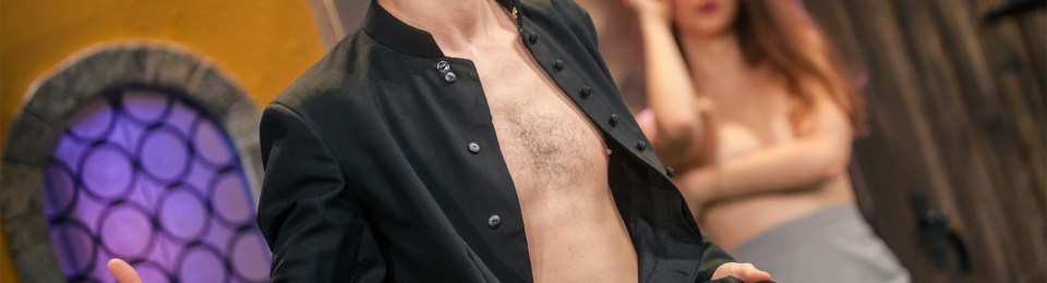 DRESDEN – Der ebenso einsame wie ratlose Pastor Gotthilf Klingelsack richtet ein Stoßgebet gen Himmel: Was soll er nur tun, damit seine Glocken wieder bimmeln? Er bittet um ein Zeichen. Lebhaftes Vögelgezwitscher antwortet ihm. Die Gefühle stehen kopf im Stück „Herr Pastor, Ihre Kutte rutscht!“ Der frivole Nachfolger von „Herr Doktor, die Kanüle klemmt!“ von Clemens Wolkmann für Zuschauer ab 18 Jahre hatte passend zum Valentinstag am Sonntag abend Premiere im Boulevardtheater Dresden.