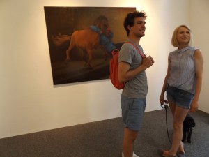 Ihre Bilder sind ein Spiel mit der Realität und Fantastischem. Sie entwerfen Szenerien mit und ohne Menschen, zeigen Sinnbildhaftes zum Verhältnis Mensch und Tier und Zwischenmenschliches. So verschieden ihre Farb- und Formsprache ist, gemeinsam ist der farbig, vieldeutigen, figürlichen Malerei von Wiebke Herrmann und den Miniaturmodellen von imaginären Städten und den menschenleer, reduzierten Landschaftsszenen in schwarz-weiß und Grautönen von Elizabeth Charnock ihre Fabulierlust und Freude am witzig-hintergründigen Geschichten erzählen. Unter dem Titel „Now“ – Jetzt zeigen die beiden Künstlerinnen und Meisterschülerinnen an der Dresdner Kunsthochschule derzeit ihre Arbeiten in ihrer ersten gemeinsamen Galerieausstellung in den Räumen der Galerie Ines Schulz am Obergraben 21 im Dresdner Barockviertel. Die Ausstellung ist am heutigen Freitag zur Langen Nacht der Galerien und Museen im Areal bis 23 Uhr zu sehen und danach noch bis 17. Juni.