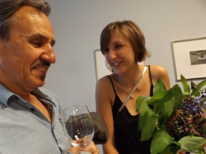 Vater und Tochter freuen sich über die erste Galerieausstellung.