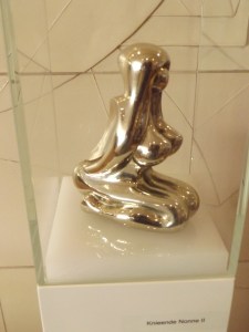 Hier ist ebenso Pawel Napierala (Poznan, *1983) zu nennen, der sich in Malerei und Installation mit sakralen und gesellschaftlichen Themen beschäftigt („untitled“, 2015, Gemälde Acryl auf Leinwand und Holzhalterung, 280 x 200 x 8 cm). Piotr Korzeniowski (*1970), bis 2016 Dekan der Fakultät für Malerei an der Akademie der Bildenden Künste in Krakau, ist mit „MORPHEM RESTART“ vertreten (2014, Multielement-Komposition mit lackierten Teilen auf dem Boden, MDF-Platte, 13 x 13 x 1 cm, 2014. Serie). Paolo Assenza (*1974), Absolvent der Akadademie für Bildende Kunst in Rom im Fachbereich Szenisches Design und 2014 Mitgründer des experimentellen Kunstraumes SpazioY ebendort, zeigt seine Installation „del corpo senza peso“ („Über einen gewichtslosen Körper“, Stahl, Travertin, Gebetszettel von der heiligen Treppe in Rom, 600 x 800 x 150 cm 2016). Diese stellt eine idealisierte „Scala Coeli“ dar, die ihres Körpers beraubt, nur durch ihre wesentlichen Linien angedeutet wird, die den Blick in einen intimen Raum der Reflexion aufsteigen lassen,