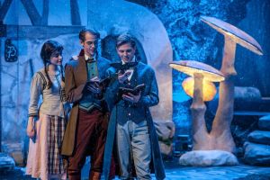 Wenn man die Welt auch als Erwachsener noch mit Kinderaugen sehen, über alles staunen und seiner Fantasie freien Lauf lassen kann. Genau das tun die mal kindlich übermütigen und nachdenklichen Märchenerzähler Jakob (Volkmar Leif Gilbert) und Wilhelm (Jonathan Heck) Grimm. „Alles ist märchenhaft, magisch, aber nicht für alle“, wissen sie ebenso. Sie und ihre Freunde bezauberten die kleinen und großen Zuschauer mit viel Witz und Herzblut spielend und singend in dieser liebevoll und originell in Szene gesetzten Märchenwunderwelt mit vielen bekannten Details und Anspielungen auf die Wirklichkeit (Buch: Kenny Friedemann, Komposition: Andreas Goldmann, Regie: Olaf Becker). Den Gebrüdern Grimm helfen die Örksenknörkse. Das sind lustige, kobaldartige Wesen, die die Welt bunter und zauberhaft machen. Jeder Mensch hat solch ein Wesen in sich, das ihm Kraft, Freude, Schönheit und Mut gibt, erklärt der grün-zauselige Oberörksenknörks Heinrich (Christian Ludwig).