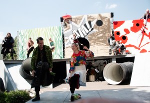 Platzinstallationen von Muriel Cornejo und César Olhagaray aus Chile beim Scheune-Schaubuden–Sommer im Juli 2017. Das XXI. Internationale Sommerfestival für Theater, Vergnügen und Musik in der Dresdner Neustadt lockt dieses Jahr. Foto: André Wirsig