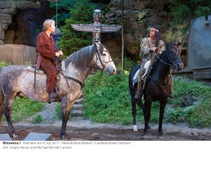 Olaf Hörbe, verkörpert in diesem Sommer erneut den Häuptling Intschu-tschuna, den Vater Winnetous, im aktuellen Stück „Winnetou I“. Er ist zugleich der Autor des Stückes. Insgesamt schrieb er 6 Karl-May Stücke für Rathen und inszeniert sie selbst von 1995 bis 2010.