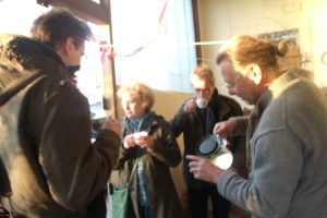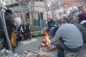 Auf die Frage einer Zuschauerin: „Sitzen Aufpasser im Publikum?“, antworten die Frauen: „Möglich.“ Es sind einige arabische Männer unter den Zuschauern. Sie summen mit bei den vertrauten Liedern und einige klatschen Beifall, als Huda, eine junge Frau mit Kopftuch sagt, sie trage es, um ihre Schönheit zu beschützen nur für einen Mann. Zugleich sagt sie, dass die Menschen selber bestimmen können, wie sie mit den Werten des Islam und dem Koran umgehen. Mit Lachen reagieren die muslimischen Frauen auf die Frage, ob Frauen ins Paradies kommen und dann dort auch junge Männer auf sie warten. Sie bewirten die Zuschauer mit süßem schwarzen Tee und lassen es Bonbons regnen bei einer Hochzeitsfeier-Szene. Da wechseln leise, temperamentvolle und kraftvoll rockige Klänge, mit denen die Frauen ihre Traurigkeit und Schmerz um das verlorene Zuhause, alte und neue Grenzen und Zwänge als Geflüchtete in einem fremden Land heraus singen und trommeln. Erscheinen ihre Gesichter in Großaufnahme auf der Leinwand vor der Frauenkirche im Wechsel mit Bildern ihrer zerstörten Heimatstädte in Syrien, Irak und und Afghanistan.