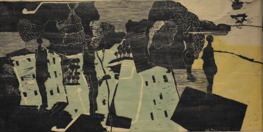 Hier ist Stefan Knechtel zu Hause, hier führt er seine Klinge durch die Welt – die Welt des Holzes, aus dem gleichermaßen Altäre und Schüsseln, Schiffe und Häuser gemacht sind, hier ist Ithaka. Die Rillen im Druckstock, später gespiegelt in der Graphik, ähneln in Ihrer Archaik einem anderen, ebenso oft totgesagtem Medium – der Schallplatte.