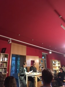 Wie es zur Roman-Fortsetzung kam und ob er vorausschauend Spuren legte für spätere Ereignisse, fragt Moderator Michael Ernst, z.B. das Schiffsticket von Marcella, der rätselhaften, temperamentvollen jungen Frau mit dem Kater auf der Schulter. Und die vielen Scherben in der Café-Bar, wo sie und Giovanni sich begegnen, wie nach einem Polterabend, nur ohne Braut und Bräutigam. Es wirkt wie ein skizzenhaftes Andeuten späterer Geschehnisse, die Seiten später wieder aufgegriffen und weiter entwickelt werden.