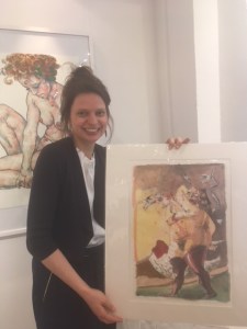Galeristin Janett Noack als barocke und moderne Kunst-Muse und mit einer „wilden Leda“ von Steffen Fischer. Foto re. (lv)