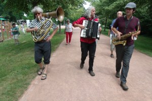 Wenn`s ums eigene Leben geht, googeln wir doch heute alles, sind denkfaul und leicht manipulierbar, kontert Dirk rebellisch. Der Regenbogen nach der Pause leuchtet nur kurz auf, mit ihm der totale Frieden und all der Plastikmüll wird auf eine einsame Insel verfrachtet in einer Liedparodie zu Salsaklängen. Voll komischer Wucht ist Marions Standpauke, begonnen bei rücksichtslos abgelegten, müffelnden Socken und gipfelnd im Rundumschlag gegen unhöfliche, elllenbogenbenutzende und kaltschnäuzige Männer. Ein Wunder, dass alle drei zum Schluss dennoch gemeinsam weiter wandern. Weil sie erkannt haben: „Den Weltenwahn in seinem Lauf hält nur Bewusstsein auf!“ Herzlicher Beifall für einen humorvoll-streitbaren Kabarettabend.
