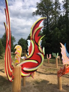 Kein Entrinnen gibt es vor den so neugierigen wie bohrenden Fragen von Lars (Hannes Sell), einem jungen Pfarrer und ehrenamtlichen Bürgermeister, der aus dem überalterten und zuletzt auch noch von den Flüchtlingen verlassenen Dorf Bohnsdorf-Kaulquapp floh und Bedenkzeit braucht. Mit seinem „Gemeinschaftsgefühl“ nervt er Marion (lässig-resolut: Nancy Spiller), eine Lehrerin, die sich selbst und dazu den „richtigen“ Mann finden will. Außerdem will sie „Schwitzen für Aleppo“. „Das ist Pilgern, Sport und Charity in einem“, erklärt Marion beim Dauerlauf. Zu ihnen stößt Dirk (trocken humorvoll: Jürgen Stegmann), Spulenwickler und von seiner Krankenkasse auf den Jakobsweg gezwungen, um sein „Bewegungskonto auszugleichen“. Er trägt sein Herz auf der Zunge, dass einem manchmal das Lachen vergeht. Wenn er egal was damit passiert, seine Spulen wickelt. Wenn sie in Kampfdrohnen eingebaut werden, könne er das nicht beeinflussen.