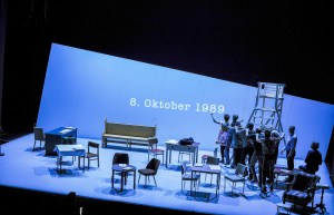 Die szenische Lesung von Esther Undisz hatte eine Woche nach der Wahl zum Europaparlament und den Kommunalwahlen Uraufführung am Sonntagabend im Kleinen Haus des Staatsschauspiels Dresden. Die Regisseurin Esther Undisz führte fast ein Jahr lang Interviews mit unbekannten und bekannten Zeitzeugen. Es ging ihr vor allem um die Motive, die sie zu Handelnden werden ließen. Vor der schrägen Bühnenwand steht ein Wachturm aus Holz mit Leiter. Auf den klettern einzelne Akteure und erzählen, wie sie jene Tage im Oktober und die Grenzöffnung erlebten.