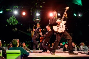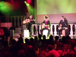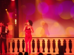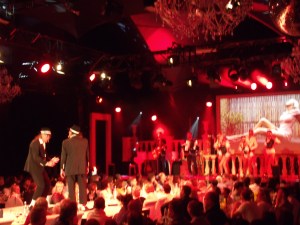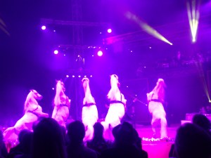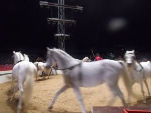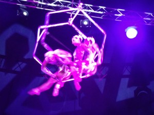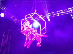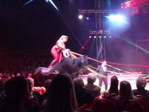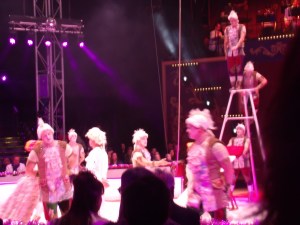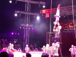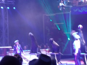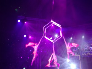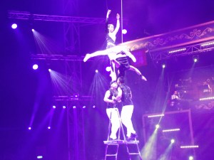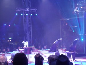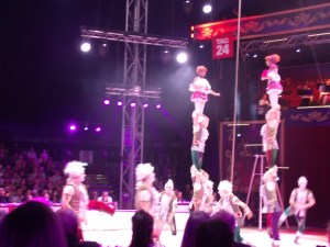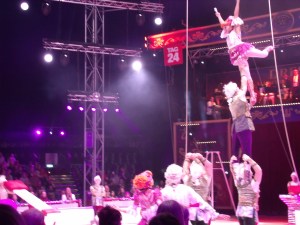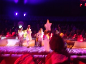 Außerdem waren Ausschnitte aus dem Programm des diesjährigen Dresdner Weihnachts-Circus zu sehen, die viel Beifall fanden. Darunter das Air-Trio aus St. Petersburg mit einer tänzerisch akrobatischen Glanzleistung. Hoch über der Manege bewegen sich die drei Luftakrobatinnen voll Grazie und schwebender Leichtigkeit rings um ein Metallgehäuse. Sie verkörpern die Sterne am Himmel des Grand Chapiteau in sich ständig wandelnden Konstellationen.