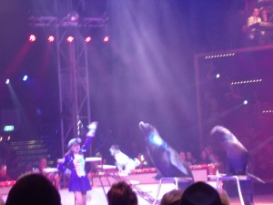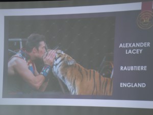 Für Heiterkeit und Staunen sorgte Seelöwe Charlie, der sich ebenso gewandt wie gelehrig und verschmitzt verhielt im innig-humorvollen Zusammenspiel mit Tierlehrer Roland Duss von der The Duss Family. Beiden machte es sichtlich viel Spaß und im Duo war das Erlebnis noch intensiver, konnte Charlie noch mehr zeigen, was er drauf hat. Zur Duss Family gehören insgesamt drei kalifornische Seelöwen und der Jack Russel Terrier Maylo.