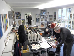 Da mischen sich Traumhaft-Surreales, Konkretes, Abstraktes, Ernstes, Poetisches und leise Komisches, Bilder und Sprache auf den Leinwänden, oft Mischtechniken, übermalten Collagen, Zeichnungen und Dingen. Da erhebt sich ein knorrig-lustiges, kleines „Rapswurzelvolk“ auf Steinsockeln, aus Wurzeln und Seidenpapier gestaltet, auf dem Fensterbrett. Blickt man in den Collagen, die farb- und kontrastreich Lebensmomente spiegeln, in Gesichter von Menschen, kleinen, großen, jungen, alten, unbekannten und Politikern.