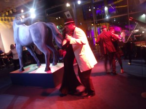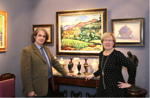 Galerist José Manuel Ladrón de Guevara und Kunsthistorikerin Regina Gerisch in der Ausstellung vor dem Bild „Die Kirche von Piana auf Korsika“ von Charles Camoin.