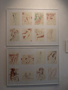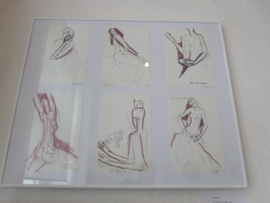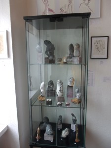 Im Kabinett zeigt Manuela Neumann ganz auf die zeichnerische Linie konzentrierte Figurationen. Für dieses unbeschreibliche Glücksgefühl zu zeichnen brach sie den Klavierunterricht ab. Jede freie Minute zeichnete sie sich von der Seele, was anders nicht auszudrücken war, so Karin Weber. Sie besuchte parallel zu einer Apothekenfachlehre die Abendschule und studierte danach an der HfBK Dresden. Sie wechselte von der Malerei zur Plastik und diplomierte bei Prof. Heinze. Nach dem Studium kehrte sie zur Zeichnung als spontanere Gefühlsäußerung zurück. „Ihre Poesie integriert Geschichten vom Alltag, vom Werden und Vergehen, von Natur, Wind und Sonne, von einem harmonischen Gleichgewicht in der Welt, das sie so ersehnt“, sagt Karin Weber über die Arbeiten von Manuela Neumann.