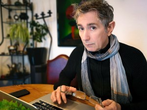 Wer zuletzt lacht… Kabarettist Thomas Schuch vom Dresdner Friedrichstatt Palast hält zurzeit die Stellung im Home Office. Foto: privat