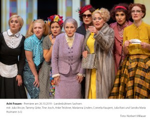 | 19:00 | Acht Frauen, KRIMINALKOMÖDIE VON ROBERT THOMAS | Theaterzelt Rathen | |||