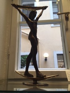 Darin setzt sie sich mit öffentlichen Rollenbildern wie frau sein soll und der Frage, was ist schön auseinander. Der Bildhauer Thomas Reichstein zelebriert Schönheit durch Bewegung in seinen grazilen und kraftvollen Tanzfiguren aus Bronze, eine davon ist eine Hommage an „Palucca“. Schön auch die Mondfrau mit ihrer doppelseitigen Wirkung: eine Sichel glänzt über ihrem Kopf und eine unter den Füßen. Der Mond trägt die Frau und die Frau ihn. In vielen seiner Figuren sieht er auch Doreen als Vorbild.