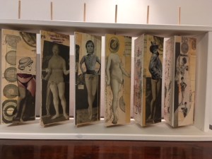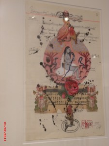 Bei ihrer reizvollen Gemeinschaftsarbeit dreht sich in den Bildcollagen buchstäblich alles rund um Lust und Liebe, mal wild, romantisch, nostalgisch, sehnsuchtsvoll und melancholisch. Neben ihrer Sammellust von allerlei Bedrucktem teilen sie die Leidenschaft des Briefe-Malens, diese Kunst der Mailart verbindet die drei Künstler seit den 1980-er Jahren mit gegenseitiger Post aus aller Welt. Jeder von ihnen hat bei den Dreh-Objekten eine Seite auf seine Art bemalt und beklebt. Da treffen Blumenmädchen und träumende Damen aus Stammbuchalben auf Frauenakte und witzig neu zusammengesetzte Körperbilder. Doch zurzeit kommen kaum Besucher in die Galerie.