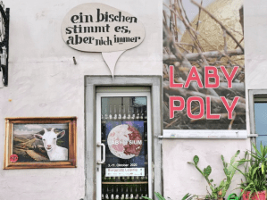 Die Fassadengalerie ist Teil des Kunstprojektes Labypoly 2020, Kunst rund um den Gasthof: Im Sommer wurden nach einem Aufruf Kunstwerke von Bürgern dem Lügenmuseum gespendet. Diese „unbrauchbaren“ Kunstwerke wurden von Künstlern umgeformt oder verfremdet. Labypoly wurde gefördert von der Stadt Radebeul, dem Kulturraum Meißen, der Sparkassenstiftung Meißen und dem Kunst der Lüge e. V.