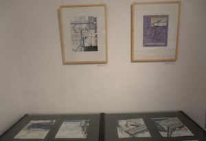 Der Ausstellungstitel spiele ironisch auch auf die Situation der Künstler an, die oft am Rand im Verborgenen wirken, nicht nur in Corona-Zeiten. In seinen Bildern verbindet Stefan Voigt assoziationsreich Außen- und Innenwelten. Der Betrachter erkundet mit ihm noch unerschlossene Gebiete und Territorien voller Farb- und Formkontraste. Das tragende Element in seinen Papierarbeiten sei die Linie, so Voigt. „Für mich sind es Wirklichkeitsfragmente, Objekte und Dinge auf der Durchreise“, sagt Stefan Voigt über sein Schaffen. Die Ausstellung versammelt vorwiegend abstrakte und einige figürliche Arbeiten, zumeist Zeichnungen und Mischtechniken in Pastelltönen und schwarze Linienumrisse sowie auf alten Buchdeckeln und einer Landkarte von Venedig gezeichnete “Versunkene Städte“ und „Wildnis“ mit archaischer Symbolik regen zum Nachdenken über den Klimawandel an. Die Bildräume wirken mal ruhig, klar, meditativ und luftig weit, mal sperrig und verschlossen. Da treffen feste, starre, ins Leere greifende, sich auflösende, eckige und kreisende Formen aufeinander. Linien verlaufen gerade, schlängelnd, auf und ab, geordnet und verquer.