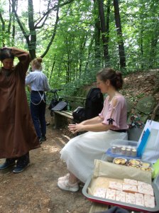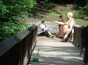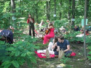Mit von der Partie sind außerdem ein „sprechender Baum“, eine Frau im Käfig und eine Einsiedlerin, die im Wald lebt unter den Gesetzen der Natur, frei von den Zwängen der Gesellschaft und in einem Laubhaufen schläft. Gespielt wird sie von Julia Henke, die auch Figuren aus Holz mit der Kettensäge bearbeitet und einige mitbringt. Es gibt eine „Freakshow“ von Verrückten, die sich im Wald tummeln. Als Nixe in blauem Kleid und Fransentuch entsteigt die Tänzerin Sabine Jordan dem Wasser an der Teichquelle. Clown Lulu alias Joachim Lippmann sorgt als „bunter Hund“ für Späße und konkurriert