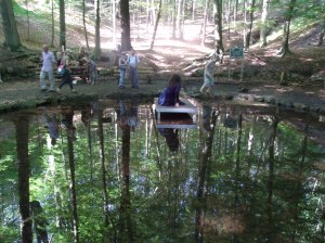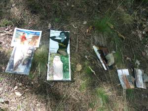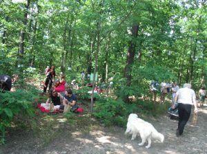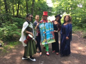 Zum Theater in den Wald: das Titelplakat für diese besondere Aufführung gestaltete die Illustratorin Annette von Bodecker (im Foto 2. v. li). Außerdem dabei: Pepper Winnfred Haak, Joachim Lippmann, Regina Felber und Sabine Jordan.