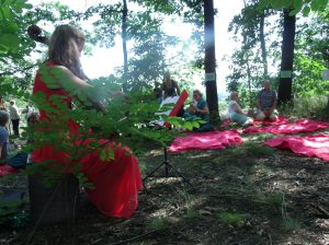 Sich Luft machen, Rausgehen und wieder live Kultur genießen nach dem langen Lockdown, das führte die Akteure um die Schauspielerin und Regisseurin Regina Felber zusammen. „Ich wollte wieder etwas machen, eine künstlerische Reise im Wald“, sagt Regina Felber, „und es ist toll, wieder mit anderen Künstlern zusammen arbeiten zu können.“ Noch nie sind die Leute so viel spazieren gegangen oder gejoggt und suchen Erholung im Wald wie während der Corona-Zeit, heißt es jetzt oft. Und Kunst im Wald?