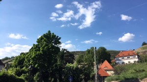 Ein ungewöhnlicher Anblick, der auch ein schönes und seltenes Malmotiv wäre: Mitten im Weinberg lief ein junger Fuchs umher, musterte neugierig die Spaziergänger auf der Steintreppe und saß seelenruhig hinter einem Rebstock im Gras. Offensichtlich gefiel dem Fuchs die Aussicht und die reifenden Trauben ebenso wie den reichlich Besuchern oben auf der Weinterrasse vom Museum Hoflößnitz am Sonntagnachmittag bei herrlichem Sommerwetter. Der Weinausschank dort hat wieder geöffnet.