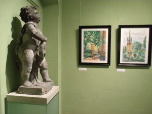 In jedem Raum hat Frank Andert eine Lieblingsarbeit. Dazu gehört das Aquarell „Über den Jakobstein“ von Ilona Lange, mit Blick von oben von der Sternwarte aus in impressionistisch sommerlichen Farbtönen. Unterhalb davon wohnt er. Besonders ans Herz gewachsen sei ihm das Bild der „Villa Bilz“ von Uwe Buchholz. „Mir gefällt der Lichteinfall auf der Fassade und man merkt den genau zeichnerischen Blick des Architekten“, so Andert. Vor zehn Jahren besuchte er im inzwischen restaurierten Wohnhaus die damals über 80jährige, letzte lebende Enkelin von Friedrich Eduard Bilz. Die vielseitigste Ausstellungsteilnehmerin ist Barbara Franz mit ihren markanten Zeichnungen mit Bleistift, Tusche und Radierungen von alten Dorfkernen, Schloss Wackerbarth, dem Leuchtturm in Moritzburg und Sonnenuntergang mit dunklem Boot am Frauenteich. Sonnig farbflirrende Bilder mit „Seeschwalben über der Elbe“ und einer „Wiese im Sommerwind“ von Carolett Kaslowski versetzen in beschwingte Stimmung.