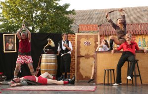 Kabaret Kalashnikov: Humor & Lebensfreude unter freiem Himmel beim Radebeuler Weinherbst auf dem Dorfanger in Altkötzschenbroda. Foto: Andrzej Lazowski