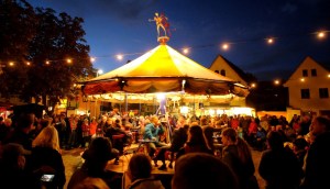 Zur Musik von Duo Draak dreht sich auf dem Platz vor dem Kuffenhaus das nostalgische Theaterkarussell von Georg Traber (Schweiz). Bei den schwungvollen Runden verschwimmen Alltag und das bunte Treiben gleichermaßen und auch erwachsene Fahrgäste verspüren noch einmal die Freude und Unbeschwertheit ihrer Kindheit. Zur Kinderkirmes auf den Streuobstwiesen warten Spiele und Abenteuer auf alle kleinen Gäste. Dort können sie nach Herzenslust herumtoben, die Umgebung auf dem Rücken eines Esels erkunden und anschließend am prasselnden Lagerfeuer handgemachten Klängen lauschen. Zudem lockt der Rummel wieder viele