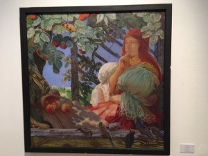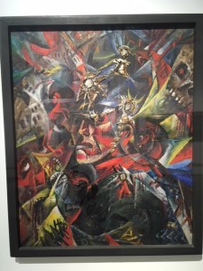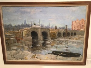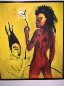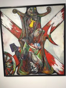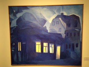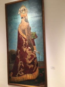 Außerdem lohnt ein Blick in die Dauerausstellung, wo neben wundervoller Landschafts- und Porträtmalerei des 20. Jahrhunderts von sächsischen Künstlerinnen und Künstlern auch einige erschreckend aktuelle Bilder zu den Dämonen des Krieges zu sehen sind, die angesichts des Krieges in der Ukraine zum Nachdenken anregen. Darunter ein Bild „Der Despot“ von Sascha Schneider von 1898. Otto Dix zeigt sich in seinem „Selbstbildnis als Mars“, als Kriegsgott in dem 1915 entstandenen Gemälde. Einen grellfarbenen, gewaltigen „Thron“ malte Hubertus Giebe 2015. Einen ironischen Blick auf den „Kreml“ – die ehemalige Gaststätte in Deuben – der wie eine Trutzburg nachtblau mit gelbem Lichtschein aus den Fenstern aussieht, hielt Eberhard von der Erde 1987 auf der Leinwand fest.