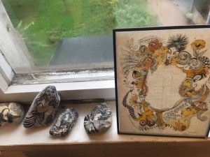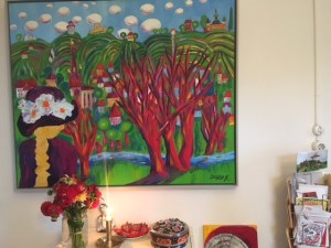 Helle Ausstellungsräume mit weitem Blick ins Freie & ein farbenfroh fantasiereiches Universum an Bildern und anderen originellen Dingen zum Staunen, Schmunzeln und Freude bereiten und nicht zu vergessen die kleine, feine Auswahl an Büchern aus dem NotSchriften-Verlag Radebeul und die gemütliche Sitzecke mit Kaminofen: Das alles macht die Galerie von Dorothee Kuhbandner besonders und anziehend für die BesucherInnen, darunter oft Touristen, die das kulturelle Kleinod unterhalb der Radebeuler Weinberge meist zufällig entdecken und um so erfreuter sind darüber. Herzlichen Glückwunsch zum Galeriejubiläum und noch viele weitere Jahre und viele interessierte und kauffreudige BesucherInnen!
