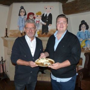 Es ist angerichtet: der Pirnaer Oberbürgermeister Hans-Peter Hanke (69, li. im Bild) und Restaurace-Babicka-Wirt Josef Micek (45) mit dem ersten Gulasch im neuen Restaurant. Dieser wurde noch in Miceks Restaurant Hurvinek in Dresden gekocht. Foto: meeco