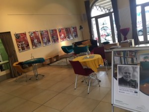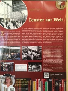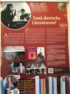 Zu sehen sind rund 20 Tafeln nostalgisch rot unterlegt, rund um Literatur aus dem Osten für Erwachsene und Kinder mit vielen zeithistorischen Fotos, Texten und QR-Codes zum Anhören von Videos mit Zeitzeugen. Darunter Interviews mit dem Schauspieler und Bücherretter Peter Sodann, dem Liedermacher Wolf Biermann, Heinrich Böll, Brigitte Reimann auf dem „Bitterfelder Wege“, 1962, Thomas Brasch und Stefan Heyms Rede im November 1989 auf dem Ost-Berliner Alexanderplatz. Im Rückblick können die Besucher der Ausstellung auf diese Zeit schauen wie in einem Kaleidoskop, an eigene Erlebnisse und Erfahrungen anknüpfend und Menschen, die die DDR-Zeit nicht kennen einen Einblick bekommen. Dazu lädt ein heller Raum als Café gestaltet mit kleinen runden Tischen, Stühlen und Sesseln in warmen Farben und einer Sofaecke mit Leselampe am Fenste  ein, wo man verweilen und das Gesehene wirken lassen kann, in der ehemaligen Schalterhalle und jetzt Kultur-Bahnhof.