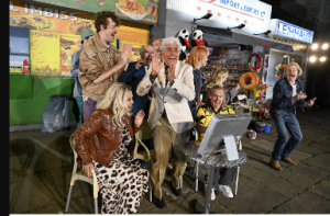 Lakonischer Begleiter des turbulenten Geschehens, Zuhörer, Tröster und Lachender Dritter ist der Imbisshändler Brighella (voll südlicher Heiterkeit und Gelassenheit, mit zurückgekämmtem dunklem Haar und Bart sehr authentisch: Holger Hübner). Im zweiten Teil gewinnt die zweieinhalbstündige Aufführung noch an Tempo, Spannung und Intensität. Klangreich musikalisch begleitet von den in der Losbude sitzenden Musikern der Banda Communale. Zu erleben ist ein äußerst spielfreudiges Ensemble, jeder geht auf in seiner Rolle und zeigt was Geld, Liebe, Glück, Erfolg wert sind und was der Einzelne bereit ist dafür zu tun. Alles hat seinen Preis. Und als alle Maskerade fällt, finden sich am Schluss der Komödie doch noch glückliche Paare. Reichlich Beifall vom Publikum.