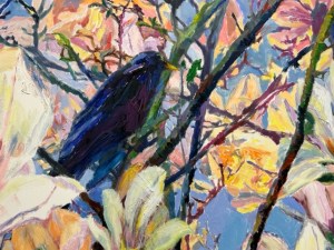 Mandy Friedrich mag außerdem, in der Erde zu wühlen und im Garten zu sein. So urwüchsig, voll kraftvoller Farbigkeit, pastos, aufgeraut und lasierend mit Spachtel und Pinsel aufgetragen sind auch ihre Bilder. Blühende Gärten und Bäume, inmitten weißer Magnolien eine schwarze Amsel. Dünenland und Kohl im Abendlicht. „Es ist wie eine neue Welt, die sich eröffnet neben unserer, die ich in meinen Bildern zeige, ohne die Missstände und Krisen auszublenden“, sagt die Malerin. „Man kämpft mit Schönheit dagegen an, damit das Leben lebenswert bleibt.“ Die 47-jährige Künstlerin ist in Meerane geboren, in Glauchau aufgewachsen und lebt seit mehr als 20 Jahren in Dresden. Sie ist gelernte Foristin und studierte Malerei und Grafik an der hiesigen Kunsthochschule von 1999 bis 2005 bei Siegfried Klotz, Elke Hopfe und als Meisterschülerin bei Ralf Kerbach. Seit 2007 arbeitet sie freischaffend als Künstlerin.