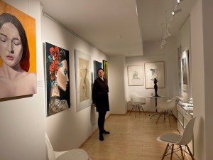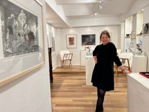 Die expressiv, klangreichen Improvisationen, abwechselnd helle, warme und dunkle, raue, knarrende und dissonante Klänge am Cello von Musiker Peter Koch aus Dresden stimmten wunderbar auf die Ausstellung ein. Diese versammelt Arbeiten von Hans Scheib aus dem Zeitraum von 1991 bis 2022, darunter kleine Bronze- und Steingussfiguren, Aktzeichnungen auf schwarzem Grund, Kaltnadelradierungen und Aquarelle, die in der Form und Darstellung konkret, offen und vieldeutig zugleich sind. Schönes und Erschütterndes, Reizvolles und Vergängliches, Lebenslust und Leid sind nah beieinander in Hans Scheibs lebensgroßen, großartigen Figuren und Zeichnungen von witzig-abgründig, sinnlich, keck, zart, verletzlich bis komisch-grotesk. Von Lust, Leidenschaft und Macht besessene Frauen, die anziehend und halb nackt da stehen.