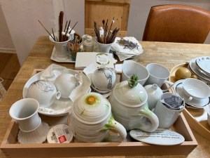 „Er liebt Frauen und feiert das Weibliche in aller Form von klassisch antik, mädchenhaft modern bis expressiv und ob junge oder reife Frauen, bei ihm dürfen sie geheimnisvoll und rätselhaft wie eine Sphinx bleiben“, sagte die Laudatorin Clivia Bahrke über Scheibs Werke. Faszinierend in ihrer reduzierten, eigenwilligen Formsprache sind auch seine Aquarelle wie der kahle Pflaumenbaum, die stachlige Weide und die Ansichten norwegischer Landschaft mit Bergen, Meer und Inseln von weißem Papier umflossen, luftig, leicht und weit in Grün-, Blau- und Violettönen. Außerdem zeigt Scheib ironische Kaltnadelradierungen von Politikern, einzeln und mehrere, im Amt und privat. Wie „E.H. in B.“ mit zerfurchtem Gesicht. Helmut Kohl kraftstrotzend. Fäuste ballende „Partner“ und ein vieldeutiger Fingerzeig von Angela Merkel. Franziskus und Donald, machtvoll und demütig der Kirchenmann. Und stolzgeschwellt dirigierende Gesten im Blatt „Wir sind Papst“ von 2011.