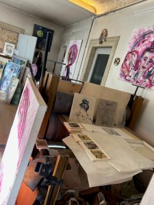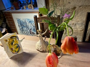 In einem ehemaligen Papiergeschäft in Tharandt hat die Künstlerin sich ihr eigenes Reich mit Raum zum Malen, Drucken und Töpfern geschaffen und bietet auch Kurse an.