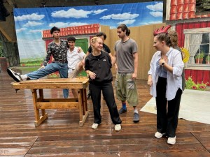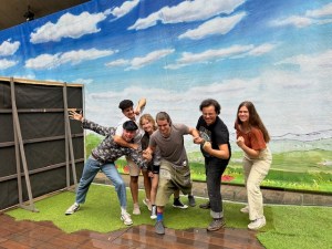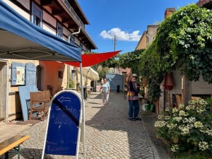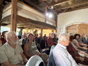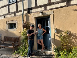 Mit viel Situationskomik und singend zur Gitarre abwechselnd sanft und wild rebellisch machte Thomas Eisen neugierig auf die Inszenierung „Cyrano de Bergerac“ über den hitzigen Soldaten und heimlich verliebten, glühenden Briefschreiber und Poeten mit der riesigen Nase von Martin Crimp frei nach Edmond Rostand unter Regie von Nicolai Sykosch (Premiere am 30.11., Kleines Haus). In einer Szene aus „Ein Sommernachtstraum“ von William Shakespeare läuft oder irrt vor dem goldenen Vorhang eine Frau im roten Kleid umher zum Titelsong aus „Solo Sunny“, dem legendären Defa-Spielfilm. Plötzlich taucht ein älteres Paar, Mann und Frau mit Rollator auf und unterhält sich. Der Mann ist schwerhörig. Die Frau ist besorgt über „die ganzen Nazis überall!“ Bei einer Demo in Bautzen hätten sie eine Regenbogenfahre angezündet. Da müsse man doch etwas machen, sagt die Frau und lud den Mann zu einem Inforeffen der Bürgerbühne im Kleinen Haus ein. Dieses findet am 4. März 2025 dort statt. Gesucht werden rüstige SeniorInnen, die sich lustvoll und furchtlos mit der eigenen Angst und der von anderen auseinandersetzen wollen, um den Zombies das Fürchten zu lehren und die Welt vor dem Untergang zu retten. Die Uraufführung von „Apocalypse 2033“ – eine prophetische Horrorsatire mit SeniorInnen von und in Regie von Paul Spittler ist am 16.5.2025 im Kleinen Haus.