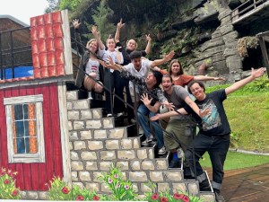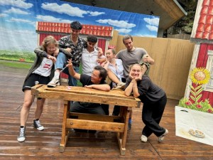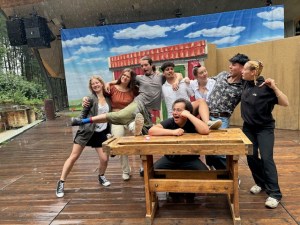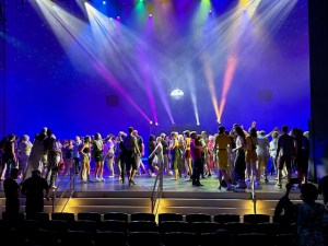Tanzen unter buntem Bühnenhimmel nach der Saisonvorschau.