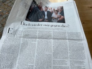 Innenschau war diesmal angesagt. Selbstbefragung der Darsteller und was Theater bewirken kann noch in der heutigen multimedialen Zeit voller anderer, virtueller Anreize und Angebote. Immer schneller und gehetzter bewegen sich auch die Schauspieler, laufen im Kreis… Ein Angebot jagt das nächste… immer in der Hoffnung auf viel Zuspruch und Erfolg beim Publikum. Spielen und verkaufen. „Ich würde mal wieder Urlaub machen… innerlich“, sagt Anna-Katharina Muck. „Urlaub in mir“, findet auch Lux toll. Es geht um das Schöne und Schwierige des Moments zwischen On-Off. „Der Moment, bevor man auf die Bühne geht. Der schmale Raum, wo man schon fast die Figur und nicht mehr privat ist“, so Muck Das sei wie wenn man um jemand trauert, sagte ihr einmal eine Kollegin. Ein Satz, der aufhorchen ließ, erstaunte und berührte. Gibt man nicht in allem, was man tut, ein Stück von sich her, ohne zu wissen ob und wie es zurückkommt? Schauspieler spüren das noch mehr und intensiver, wenn sie mit ihrem Körper und Stimme auf der Bühne stehen, in der Rolle aufgehen. immer wieder spielen, sich selbst loslassen und wieder finden, neu erfinden, ohne sich zu verlieren…