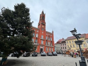 Das märchenhafte backsteinfarbene Rathaus