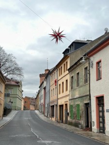 Weihnachtssterne ringsum hoch über den engen