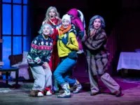 Mit viel Herzblut, Witz, Charme und Schwung spielt, singt und tanzt das Damen-Quartett, vier Freundinnen in einer tief verschneiten Berghütte, in der weihnachtlichen Revue „Weiße Zeiten“ in der Comödie Dresden. Foto: Robert Jentzsch