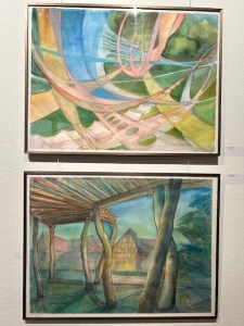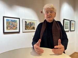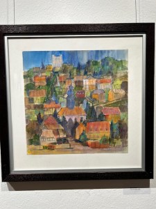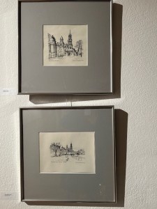 Mit seinen Bildern nimmt Pinkert die Besucher mit auf eine faszinierende Reise durch sein reichhaltiges Lebenswerk von mehr als 80 Jahren. Die Bandbreite reicht von Zeichnung, Linolschnitt, Ölmalererei bis zu typografischen und buchgestalterischen Arbeiten und SZ-Zeitungsartikel von ihm und Zeichnungen über alte Dorfkerne u.a. Ihn treibt das Motiv an. „Es ist der Versuch, den Moment festzuhalten, ein interessantes Geschehen: sei es ein Bauensemble, eine Menschengruppe, Köpfe, Situationen oder die Besonderheit einer Landschaft. Das Magische des Augenblicks“, erzählt Werner Pinkert. Manchmal spiele Originalität hinein, immer sei ihm das Charakteristische wichtig. Als Kind sah er seiner Mutter gern beim Zeichnen zu und „bewunderte sie, wie sie Aquarelle aufs Papier brachte.“ Das war in Mügeln bei Oschatz, wo Werner Pinkert aufwuchs. Mit 14 Jahren begann er eine Ausbildung zum Steinmetz. Kurz vor Kriegsende 1945 wurde er zum Arbeitsdienst eingezogen und geriet er in amerikanische Gefangenschaft.