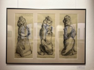 „Das Bild kommuniziert mit sich selbst, die Zeit frisst schon die Farbe auf, doch die Frau bleibt ewig jung“, sagt Gabrielle Pinkert, die Tochter des Künstlers. Sie ist Moderatorin und Filmemacherin und pendelt zwischen ihrer Heimat und Bayern, wo sie wohnt, um nach ihren Eltern in Dresden zu sehen. „Die Nachbarin“ fasziniere viele Besucher der Ausstellung. Von eigenem Reiz und erstmals zu sehen ist auch ein Akt von Pinkert – sein Modell eine Studentin. „Sie hielt immerzu den Kopf geneigt und nestelte an ihrem Strumpf, weil sie nicht erkannt werden wollte“, erzählt Werner Pinkert. Das Pastellkreidebild wirkt natürlich, spontan, zeitlos schön. Schmunzeln lassen seine Kohlezeichnungen mit „Felsen der Teufelsmauer“ im Harz und aus dem Gestein blickenden, schelmischen Gesichtern. Auf zwei kleinen Acrylbildern strahlt „Fußballglück“ mit energiegeladenen Bewegungen.